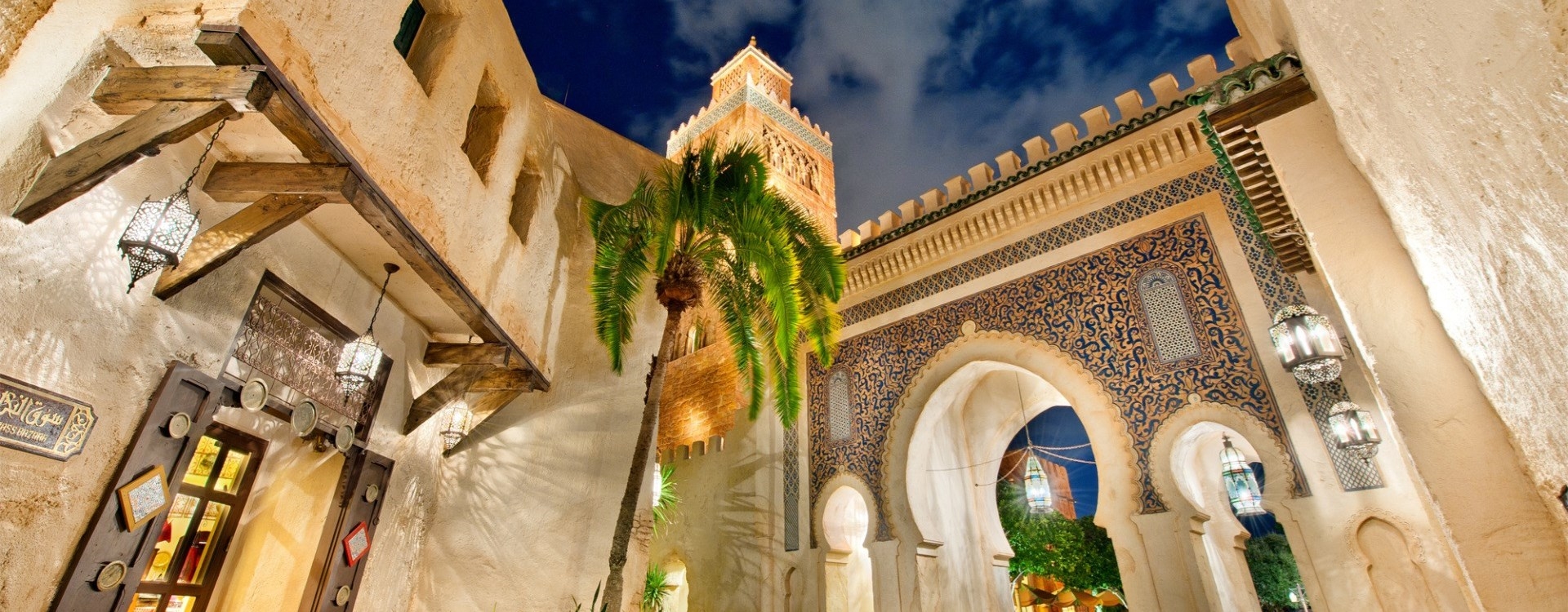 Petit déjeuner, Journée consacrée à la visite de MARRAKECH, « la perle du sud », ancienne ville impériale fondée en 1062 : la majestueuse silhouette de la Koutoubia dont le minaret du XIIè siècle est un véritable joyau de l’art arabe, le Palais de la Bahia, siège du grand Vizir Ba Ahmed datant de la fin du XIXè siècle, et les jardins de la Ménara, plantés d’oliviers et disposant d’un grand bassin d’irrigation. Déjeuner optionnel. Continuation de la visite : tour des remparts édifiés au XIIè siècle, Promenade dans les souks à l’artisanat infiniment varié. Dîner dans un ancien palais de la médina avec musique traditionnelle. Retour à l’hôtel, diner et logement.